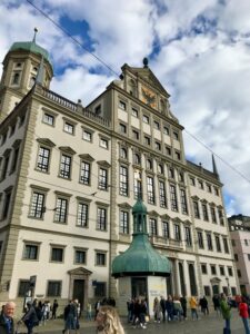 Unser Ziel, das Holiday Inn Hotel in Augsburg, erreichten wir schließlich am frühen Nachmittag, wo uns Susanne Bulmer und zwei weitere Augsburgerinnen bereits herzlich in Empfang nahmen. Sie zeigten uns „ihr“ Augsburg – mit einem beeindruckenden Stadtrundgang durch die Fuggerei, die Anna-Kirche mit der Lutherstiege, die malerische Altstadt und das imposante Rathaus.